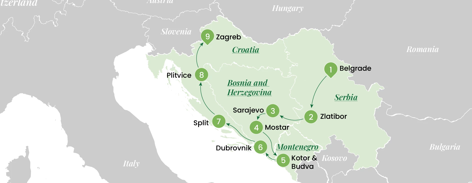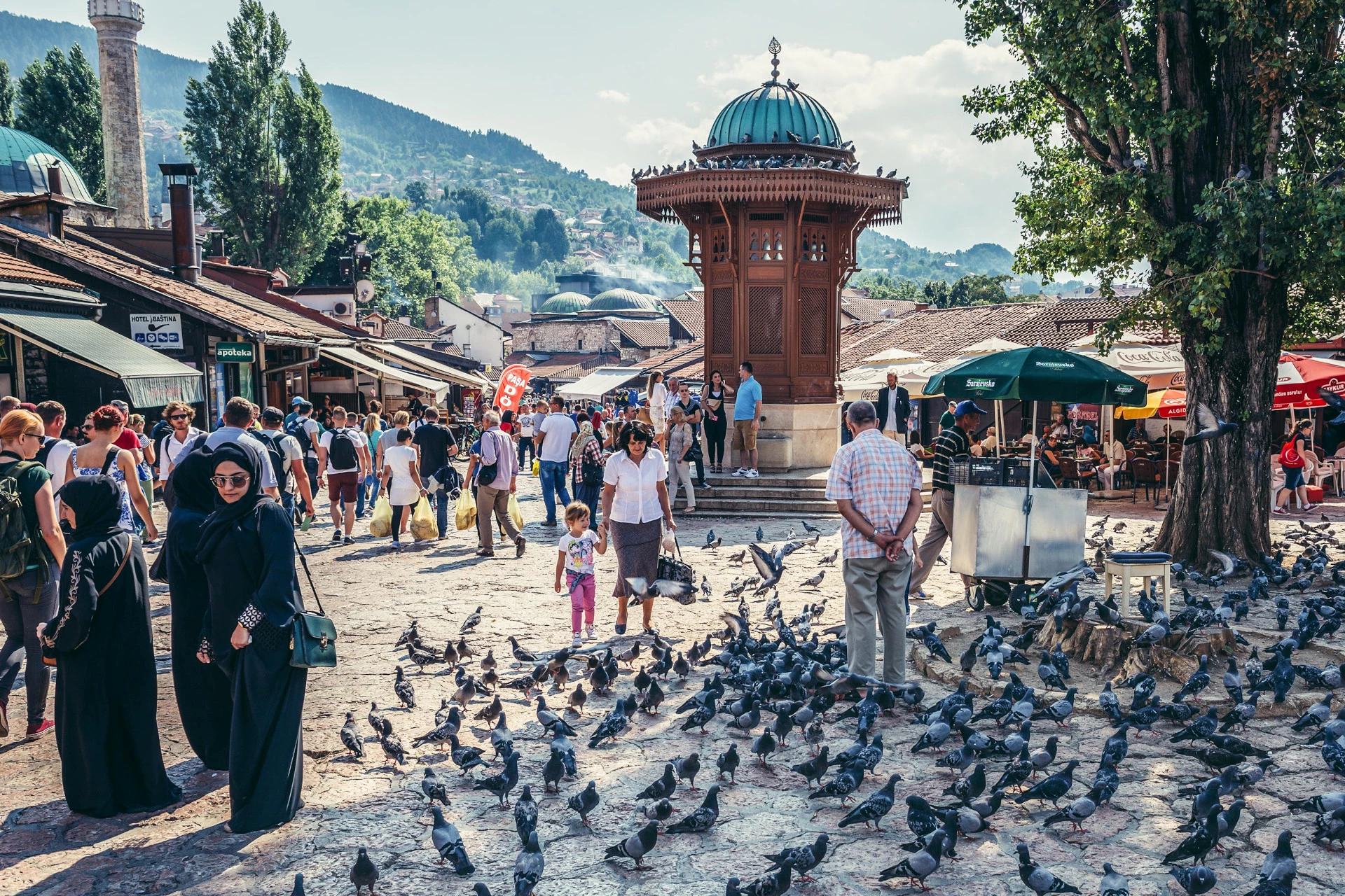 Cross into Bosnia and Herzegovina and stop in Visegrad to visit Andricgrad, a cultural complex built near the famous bridge on the Drina River, known from the Nobel Prize-winning novel “The Bridge on the Drina”. After lunch, drive to Sarajevo and check into your hotel.